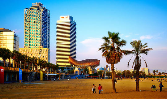 Seguiremos por la fachada Marítima, viendo el Paseo de Colón, cruzando el Barrio de la Barceloneta y el puerto Olímpico desde donde ya se puede contemplar la Sagrada Familia (parada opcional).
