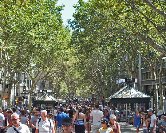 Es el paseo más popular de la ciudad y, al mismo tiempo, el espejo de las diferentes caras de la ciudad. En poco más de un kilómetro, conecta la plaza de Catalunya con el Puerto, se pueden ver grandes palacios, floristerías, teatros burgueses, mercados populares, entre otros elementos.